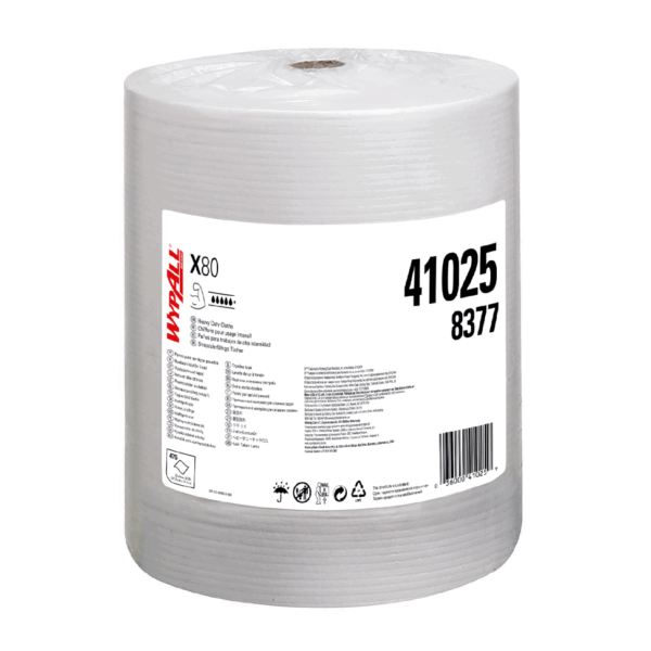 Протирочные салфетки в рулоне WypAll X80 производства Kimberly-Clark Professional. Обладают следующими преимуществами: используются с растворителями, вытирают смазки или маслянистые жидкости; объединяют в себе исключительные эксплуатационные качества и прочность. Состав: целлюлоза 81%, синт. волокно 19% Размер листа: 31 × 31.5, 1 рулон 450 салфеток